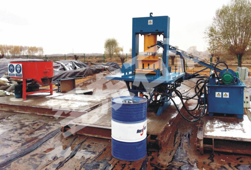 泥饼制砖是用泥浆分离出来的固相中加入适需的黏土和沙作为泥浆砖的加固原料,加入絮凝剂脱水,凝胶剂将黏土和沙胶结起来,经过制砖机压制成型。制砖添加剂中磷酸盐主要控制重金属的溶解;吸附剂具有很大的比表面积,可吸附有机物和金属离子;含水泥的复合固化剂可以通过水化反应“包裹”和固定污染物,降低其迁移能力,固化剂的硬化作用可以使这些污染物即使在外力作用下也不致游离和溶失,从而达到无害化处理目的。 所制的免烧砖的规格为480mm*480mm*240mm,体积约为0.05 m3。固化处理后的泥浆所制的砖抗压强度(28D)一般为0.5~1.5MPA,可用于铺设简易道路或修建井场围墙用。这样,可以有效地利用废旧资源,变废为宝,具有直接经济效益及显著社会效益。泥浆砖的浸毒试验及制砖污水的总铬、化学需氧量低于国家环境污染控制指标. 主要特点: 固化处理后的泥浆所制的砖*大抗压强度1.5MPA,可用于铺设简易道路或修建井场围墙用。同步振动箱激振力强大,缩短成型周期,使制品密实效果更好。 采用PLC电控系统,集成式液压站,在运行中准确快捷。 操作维修方便,占地面积小,节省大量人力、降低资金投入。储料仓斗门自动开闭系统,结构简单,无需增加功耗。 |